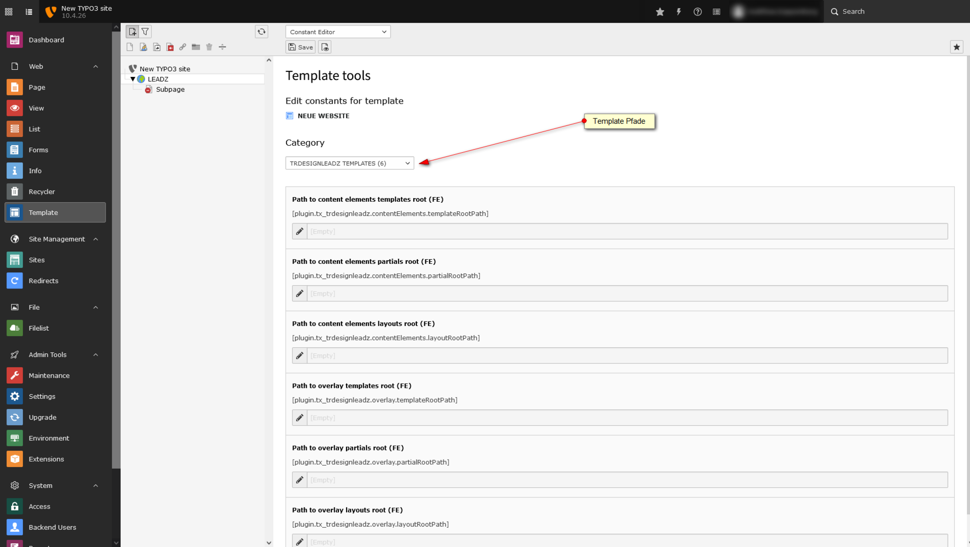 Das Extension Setup sollte nach der Installation eingebunden werden und Sie müssen Ihren Leadz Key hinterlegen.