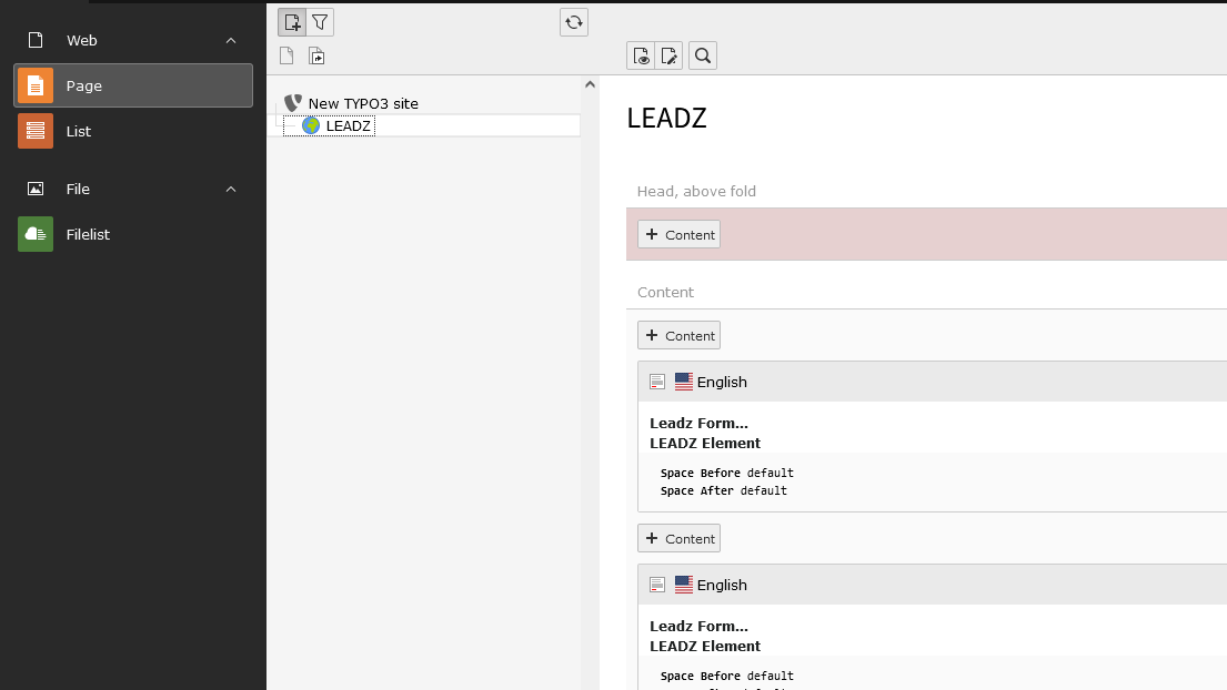 LEADZ Inhaltselement anlegen